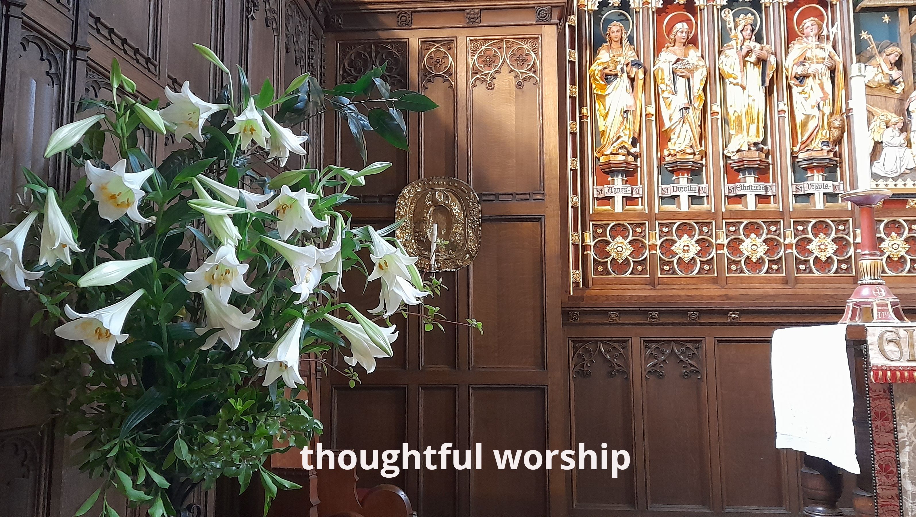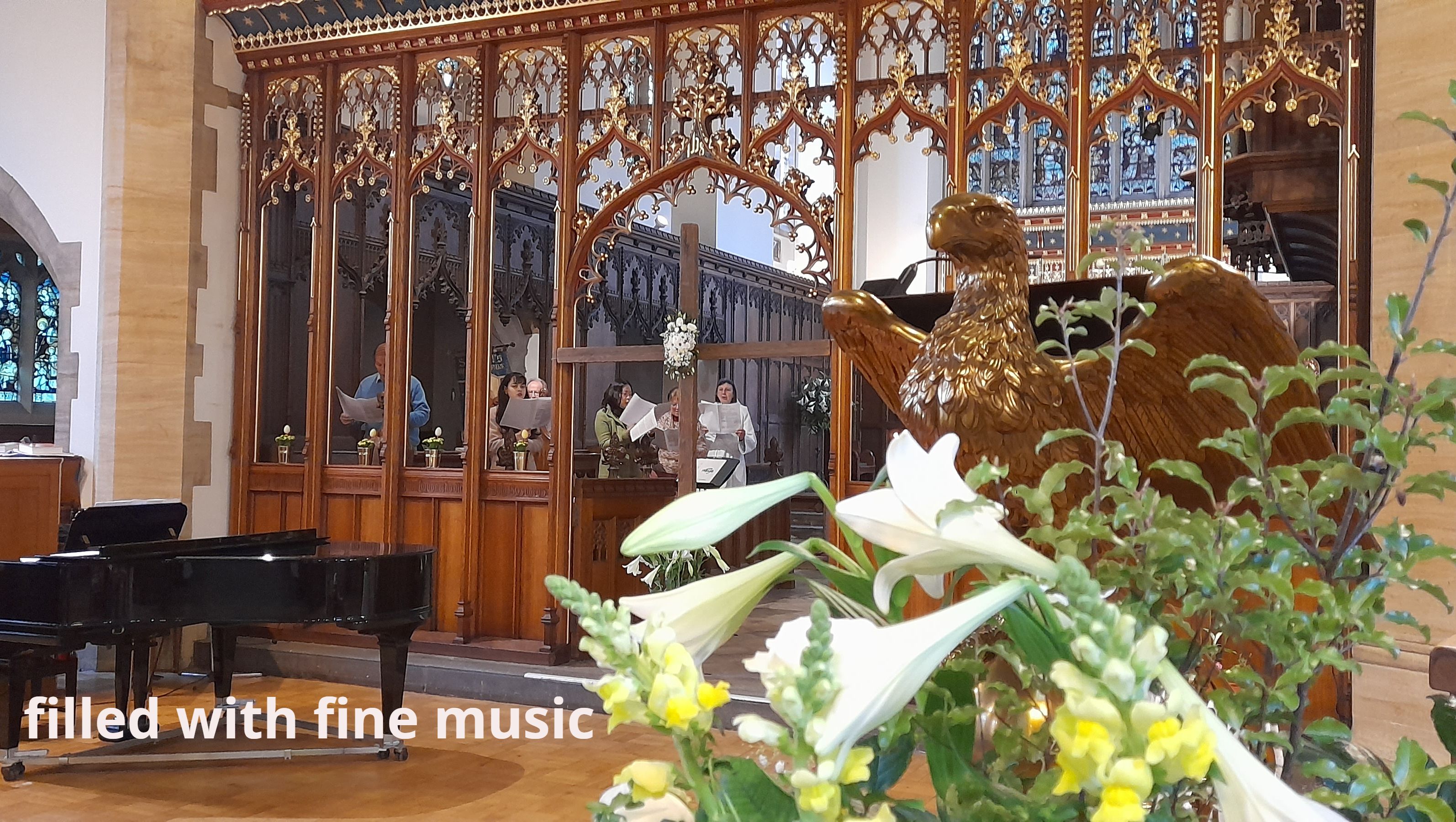 Our main Sunday parish communion service at 10.00 am in church is also livestreamed on our YouTube channel. We celebrate the Eucharist every Wednesday at midday, and you can join us for Morning and Evening Prayer in church from Monday to Thursday each week.